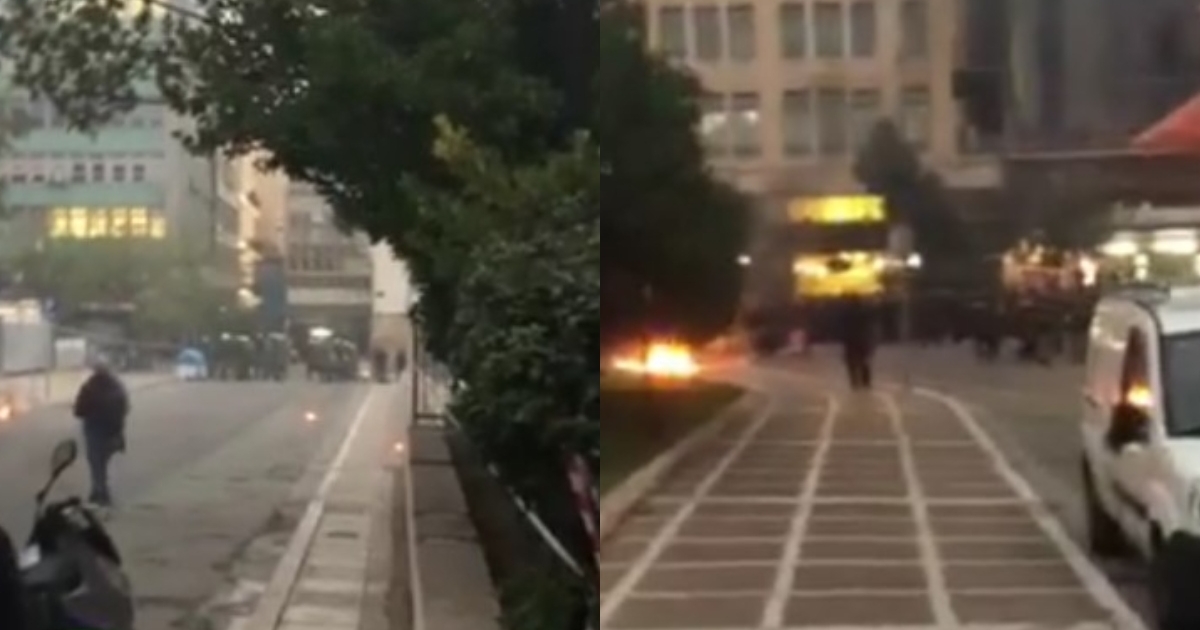 Ένταση με κρότου λάμψης και μολότοφ στην πλατεία Κλαυθμώνος (vid)