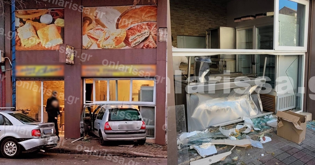 Απίστευτο τροχαίο στη Λάρισα: Αυτοκίνητο μπούκαρε μέσα σε τυροπιτάδικο