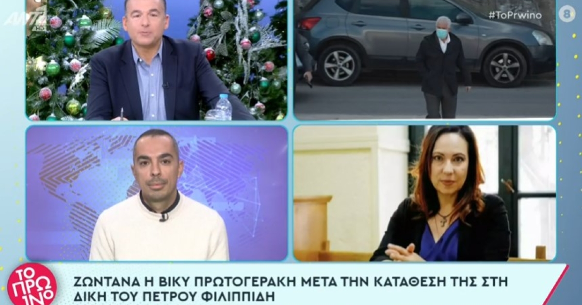 Η Βίκυ Πρωτογεράκη κατέθεσε στην δίκη του Πέτρου Φιλιππίδη και σήμερα παρενέβη τηλεφωνικά στην εκπομπή του ΑΝΤ1 «Το Πρωινό», φανερά εκνευρισμένη, τονίζοντας ότι έχουν αλλοιωθεί τα λόγια της από τον δημοσιογράφο της εκπομπής.