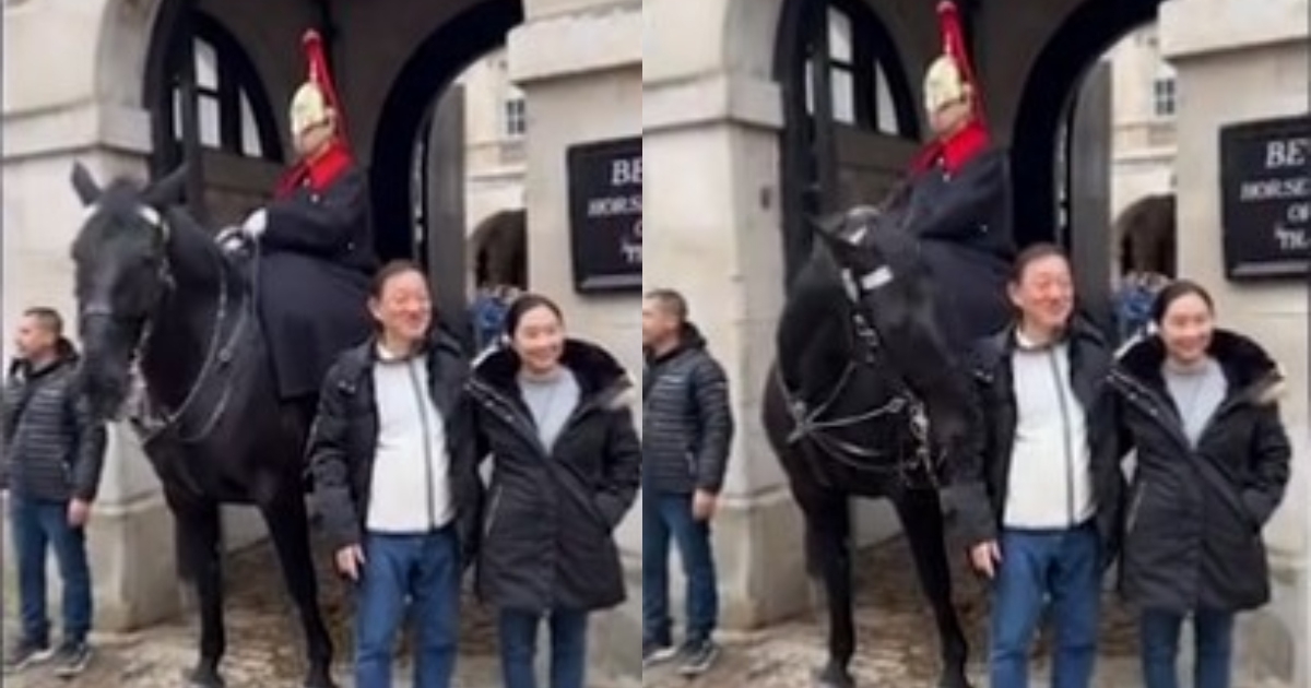 Μια ξεκαρδιστική στιγμή συνέβη στο Λονδίνο, όταν ένας τουρίστας στάθηκε δίπλα στο άλογο της βασιλικής φρουράς κατά τη διάρκεια μιας ημερήσιας εκδρομής.