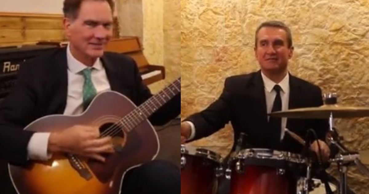Λοβέρδος στα ντραμς και Παπανδρέου στην κιθάρα έφτιαξαν μπάντα και λένε τα κάλαντα (vid)