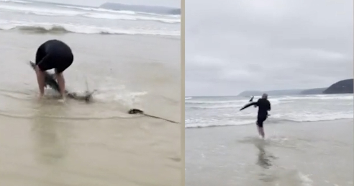 Ένας σέρφερ χαρακτηρίζεται στα μέσα κοινωνικής δικτύωσης ως ήρωας επειδή διακινδύνευσε τη ζωή του μαζεύοντας έναν καρχαρία και μεταφέροντάς τον πίσω στη θάλασσα.
