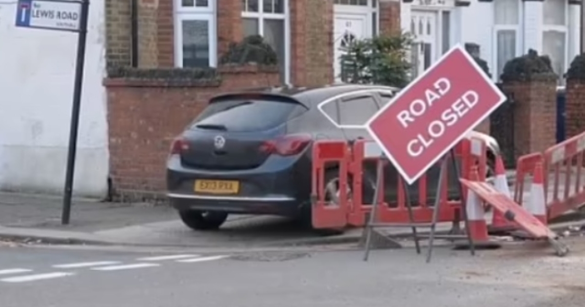 Οι πεζοί στο Λονδίνο έμειναν σαστισμένοι καθώς τα αυτοκίνητα στο Southall, επέλεξαν απερίσκεπτα να αγνοήσουν τις πινακίδες διακοπής κυκλοφορίας που τους έλεγαν ότι δεν μπορούσαν να περάσουν.