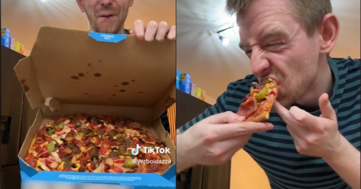 Ακόμα και ο ίδιος ο καλοφαγάς θεώρησε ότι ήταν πολλά. «Θεέ μου, υπάρχουν πολλά στρώματα από ατελείωτα απλά πράγματα!» αποκάλυψε ο Darren κατά τη διάρκεια του βίντεο με το unboxing της πίτσας.