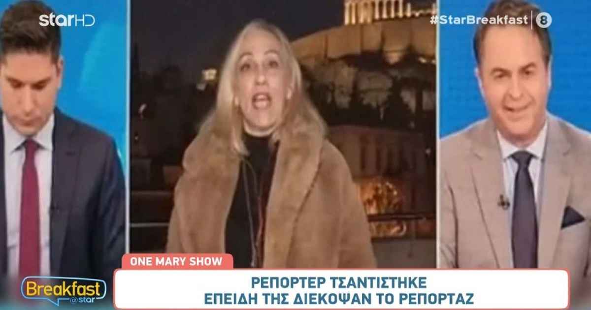 Κι ενώ μετέφερε ζωντανά το ρεπορτάζ, ο παρουσιαστής την διέκοψε λόγω περιορισμένου τηλεοπτικού χρόνο με την ίδια να αντιδρά έντονα λέγοντας με τον εκνευρισμό της να είναι εμφανής: «Μια στιγμή να πω όλο το ρεπορτάζ».