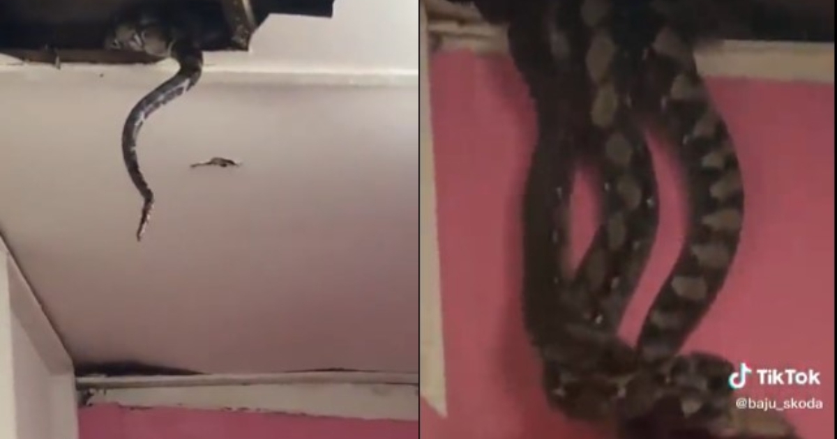 Πλάνα που κόβουν την ανάσα κατέγραψαν τη στιγμή που τρία γιγάντια φίδια έπεσαν από τη στέγη μιας οικογένειας στη Μαλαισία. Σύμφωνα με το News.com.au, η οικογένεια είχε καλέσει ένα συνεργείο έκτακτης ανάγκης στο σπίτι τους αφού άκουσε περίεργους θορύβους τη νύχτα.