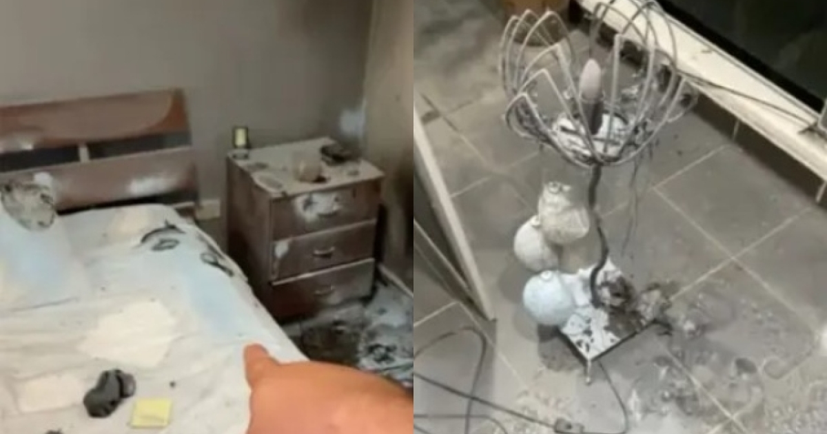 Ο TikToker επισήμανε τα απομεινάρια της τσάντας, με τη δύναμη της έκρηξης να φέρεται να έχει ως αποτέλεσμα κομμάτια δέρματος να κολλήσουν στο ταβάνι. Ισχυρίστηκε ότι η έκρηξη ήταν τόσο ισχυρή που ανατίναξε την πόρτα της σήτας.