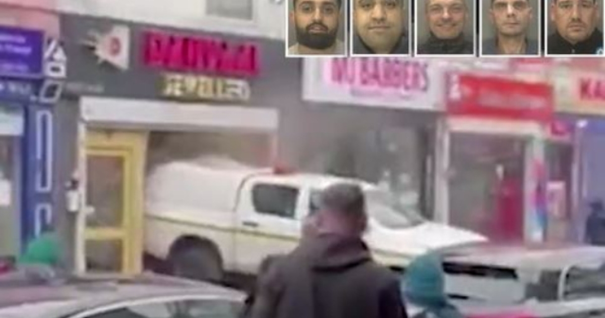 Τότε πέντε ληστές βγήκαν από το φορτηγό και άρπαξαν κοσμήματα και χρυσό αξίας 300.000 λιρών σε μόλις 70 δευτερόλεπτα. Ένας από τους δράστες μάλιστα, χρησιμοποίησε βαριοπούλα για να σπάσει εντελώς ότι είχε απομείνει από τη βιτρίνα, ενώ στη συνέχεια έβαλε σε αθλητικούς σάκους τα χρυσά κοσμήματα.