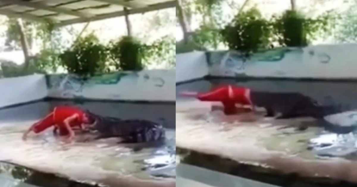 Ζωοφύλακας στη Ταϊλάνδη τοποθέτησε το κεφάλι μέσα στο στόμα του κροκόδειλου (vid)