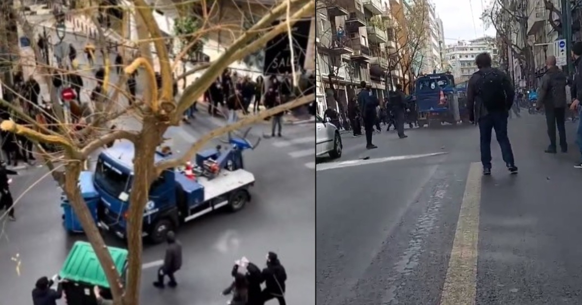 Τρόμο και ερωτήματα προκαλεί βίντεο που καταγράφει την αδιανόητη πορεία γερανού της αστυνομίας στην οδό Ακαδημίας κατά τη διάρκεια του συλλαλητηρίου για τα Τέμπη.