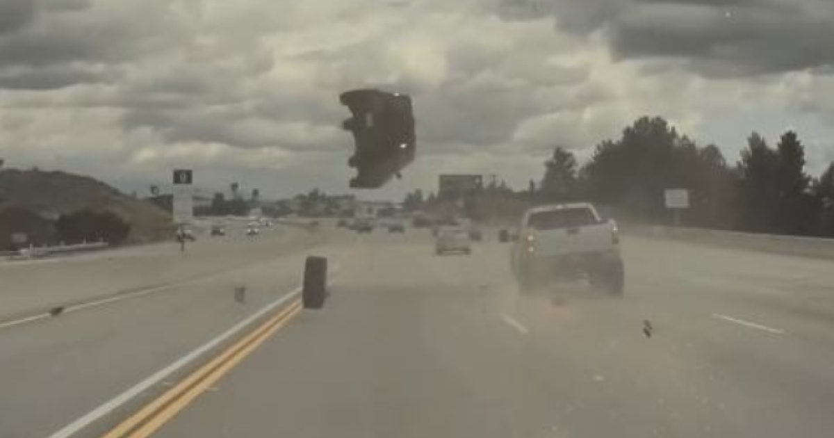 Στον αέρα πέταξε ένα αυτοκίνητο το οποίο βρήκε σε λάστιχο που αποκολλήθηκε από φορτηγάκι.