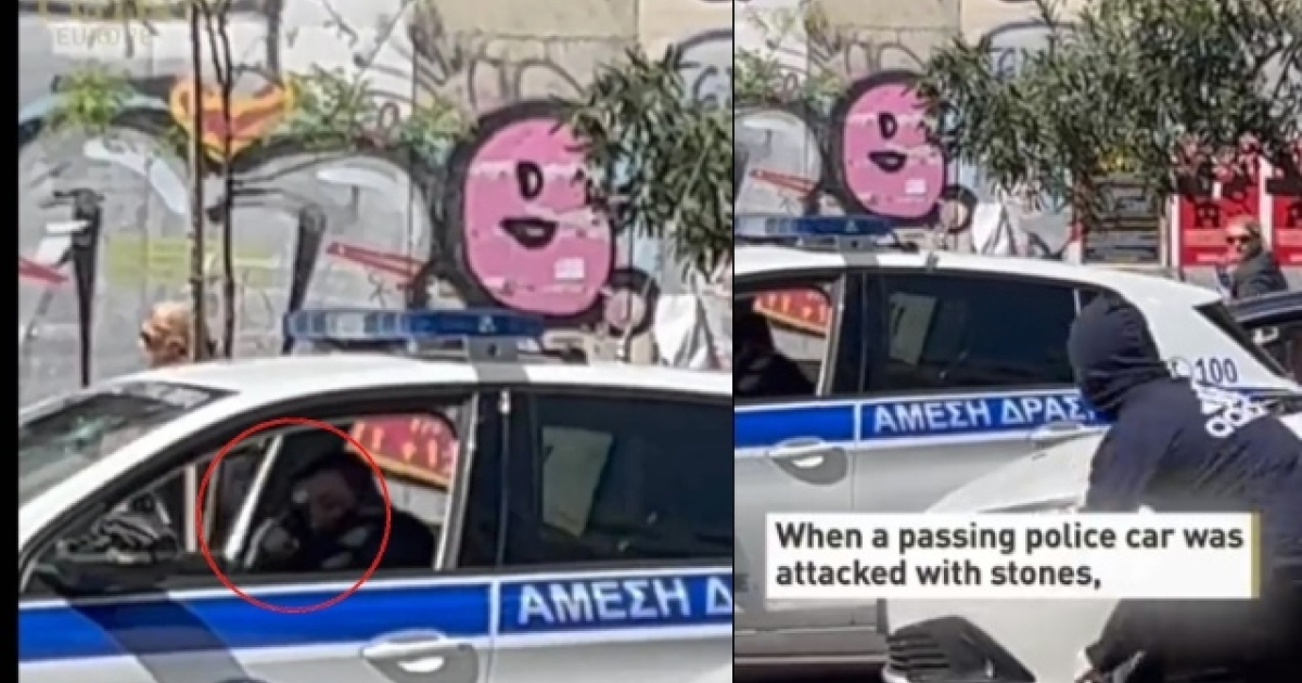 A policeman shot four rounds in the air after being attacked in the center of Athens when his car was attacked with stones.#Athens #Greece pic.twitter.com/8rhNF1q5DB