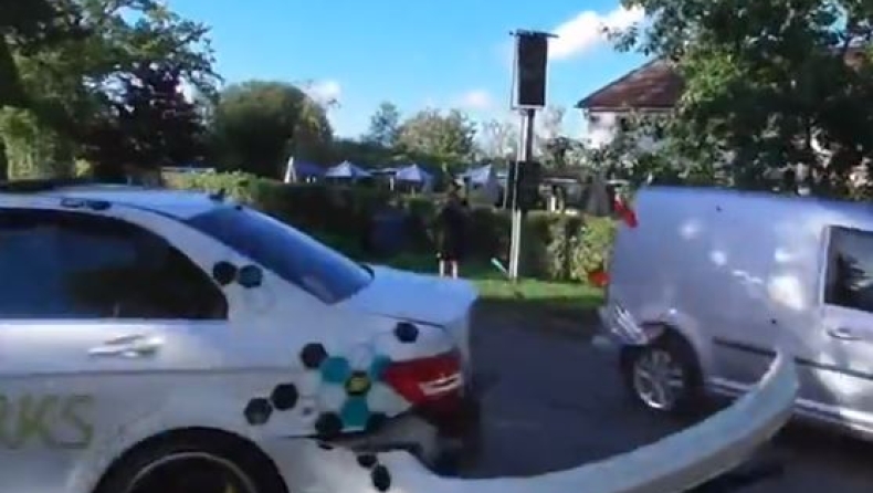 Τον γύρο του διαδικτύου κάνει ένα τρακάρισμα στην Αγγλία, όπου μια Mercedes συγκρούεται με ένα βανάκι σε διασταύρωση.