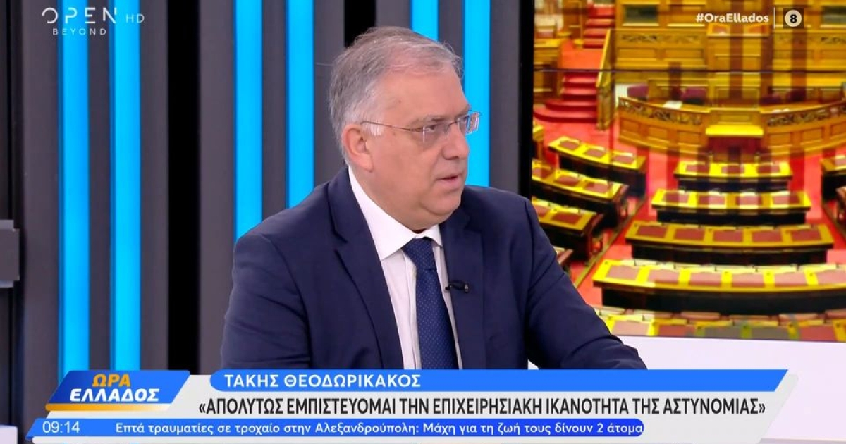 Ο υπουργός Προστασίας του Πολίτη, Τάκης Θεοδωρικάκος βρέθηκε καλεσμένος στην εκπομπή «Ώρα Ελλάδος» του OPEN και αναφέρθηκε μεταξύ άλλων στα επεισόδια στην ΑΣΟΕΕ και το περιστατικό με τον πυροβολισμό αστυνομικού στην Πατησίων.