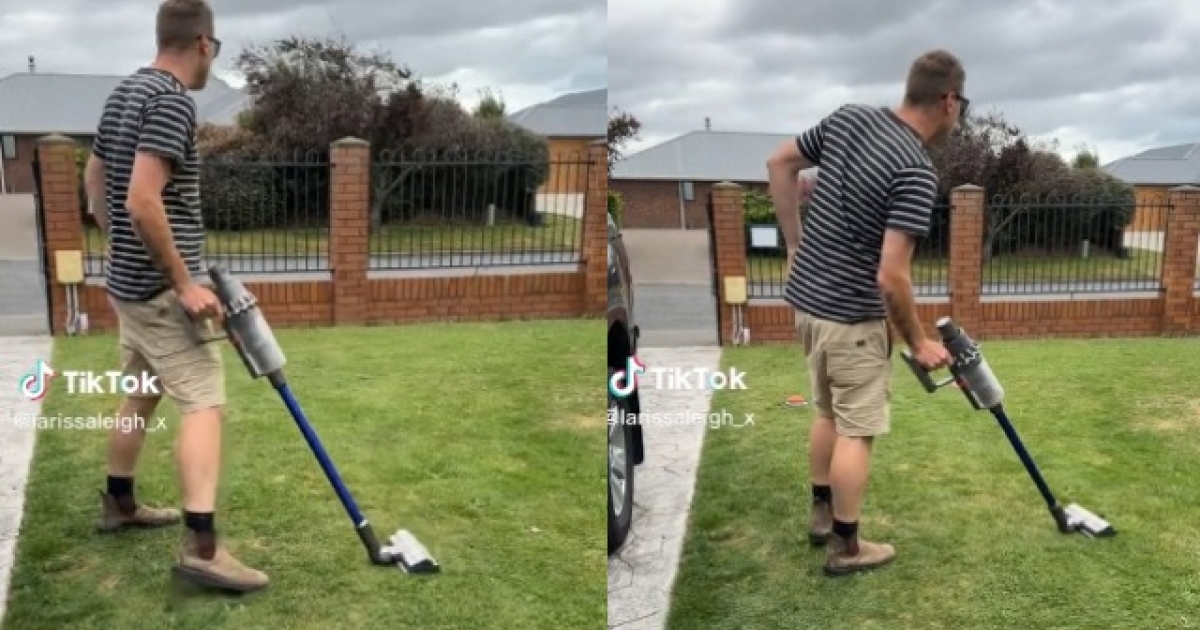 Έβαλε ηλεκτρική σκούπα για να καθαρίσει το γκαζόν του και έγινε viral (vid)