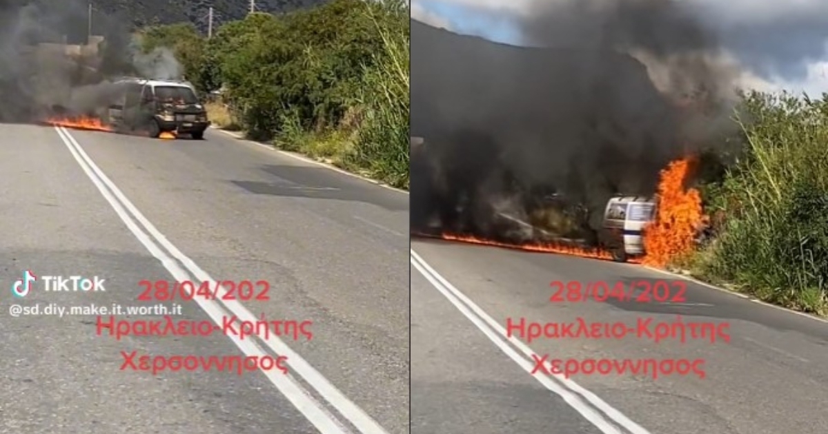 Στις φλόγες τυλίχθηκε όχημα εν κινήσει, χθες Παρασκευή, 28 Απριλίου, στον δρόμο Ηρακλείου - Χερσονήσου.