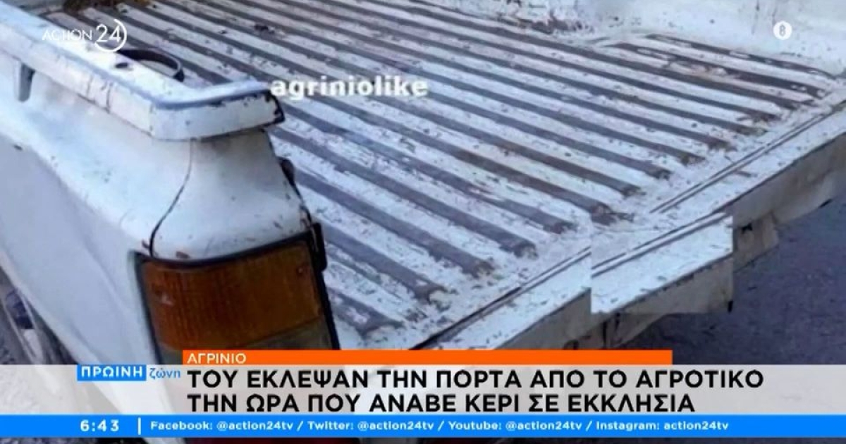 Ένα απίστευτο περιστατικό κλοπής συνέβη στο Αγρίνιο όταν άγνωστοι έκλεψαν την πόρτα της καρότσας αγροτικού την ώρα που ο ιδιοκτήτης σταμάτησε στην εκκλησία.