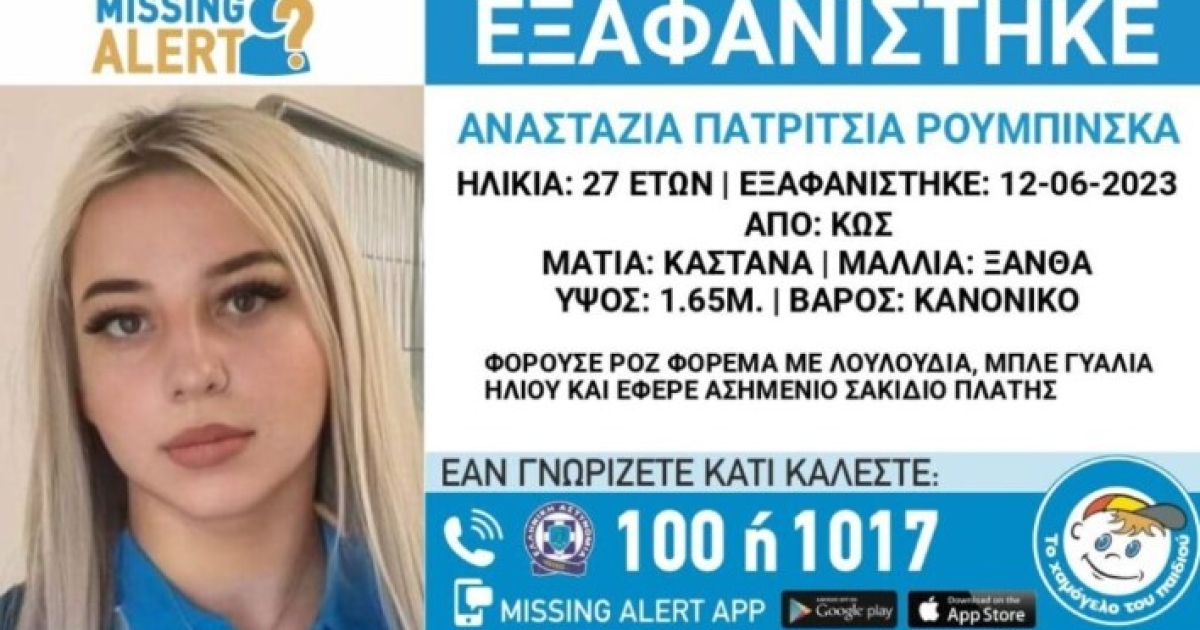Σε θρίλερ εξελίσσεται η εξαφάνιση της 27χρονης υπηκόου Πολωνίας, Αναστασίας Ρουμπίνσκα, βρίσκεται σε εξέλιξη από τις 12 Ιουνίου στην Κω.