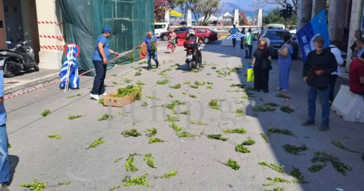 Στην Πάτρα έριξαν δάφνες στον δρόμο για να υποδεχτούν τον Κυριάκο Μητσοτάκη