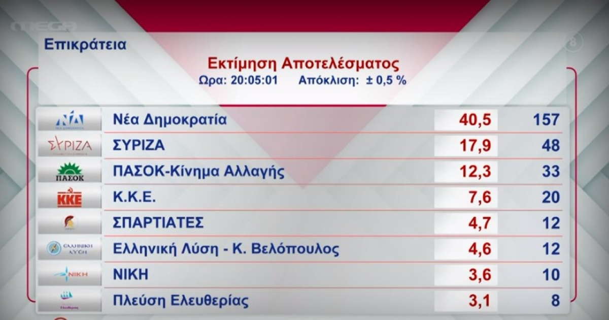 Οι έδρες των κομμάτων στην εκτίμηση του τελικού αποτελέσματος