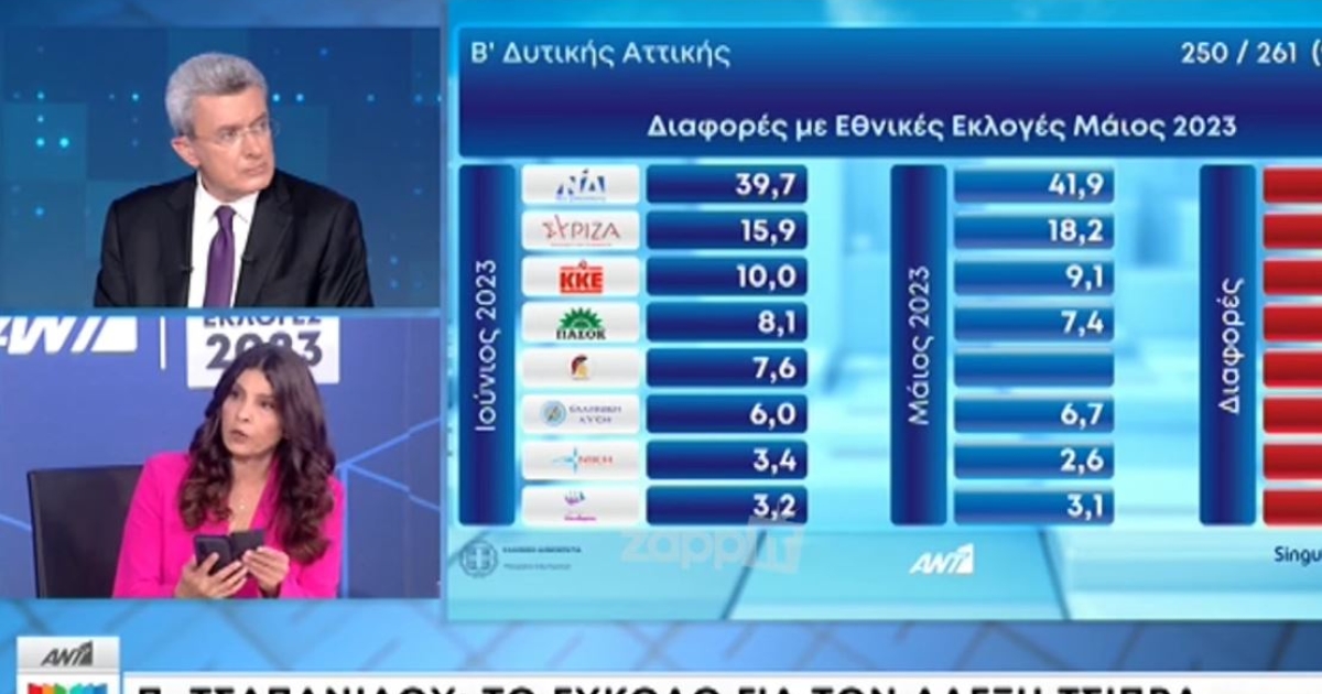 Ο Τάκης Ζαχαράτος παρενέβη ως... Πόπη Τσαπανίδου στον χθεσινοβραδινό εκλογικό μαραθώνιο του ΑΝΤ1 με συντονιστή τον Νίκο Χατζηνικολάου.