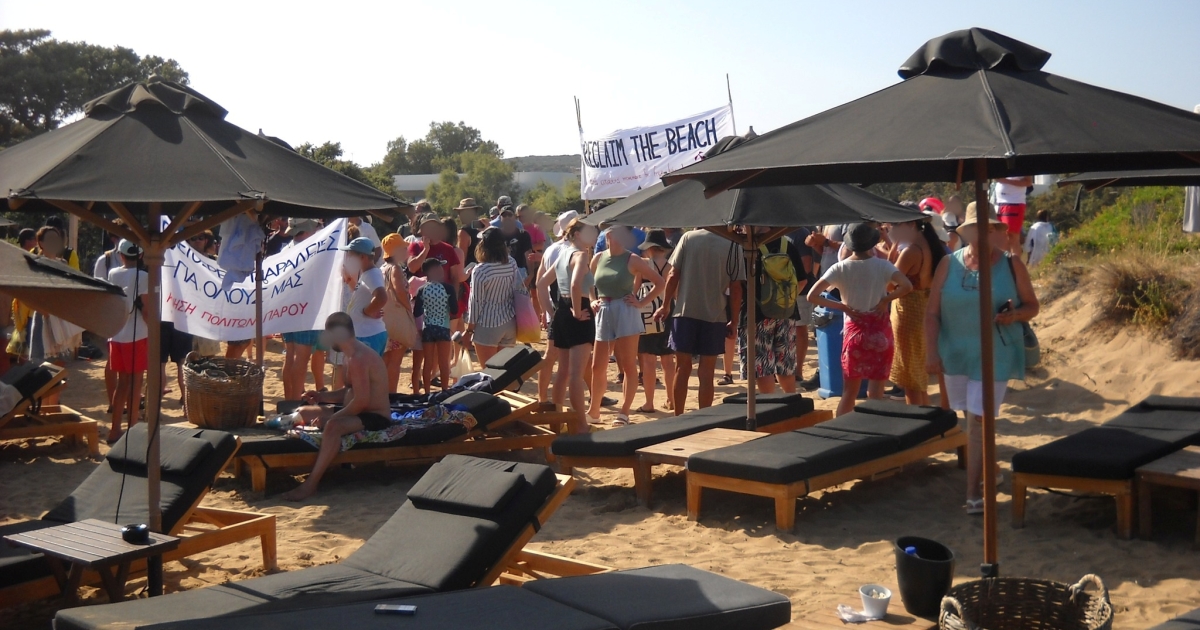 Έτσι την Κυριακή, οι κάτοικοι της Πάρου αντιστάθηκαν, καθώς 300 άνθρωποι βρέθηκαν στην παραλία Σάντα Μαρία και ως ένδειξη διαμαρτυρίας άπλωσαν τις πετσέτες τους μπροστά από τις ξαπλώστρες και τις ομπρέλες που είχε βάλει beach bar.
