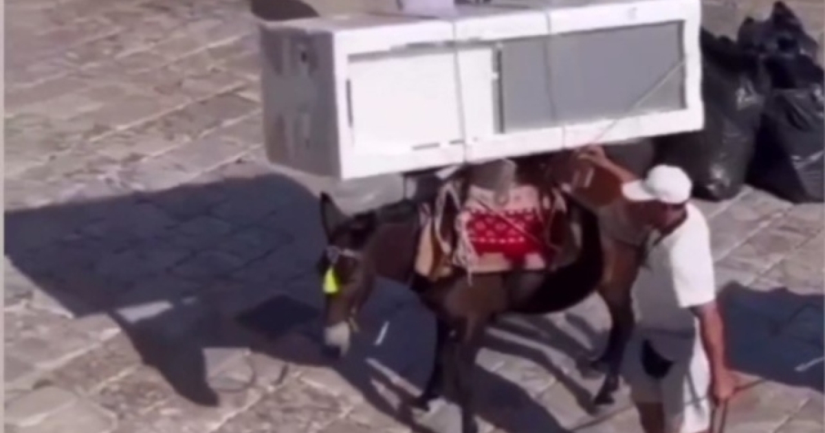 Στις νέες ντροπιαστικές εικόνες βλέπουμε γαϊδουράκια και άλογα που χρησιμοποιούνται για μεταφορές στο νησί, να είναι υπερφορτωμένα ακόμα και με ολόκληρα ψυγεία...