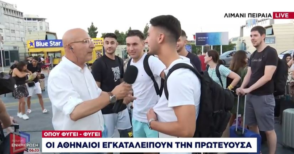 Ο δημοσιογράφος του ΣΚΑΪ είχε την ευκαιρία να μιλήσει με πολλούς ταξιδιώτες που ετοιμάζονταν να επιβιβαστούν στο πλοίο για Πάρο και Νάξο, με αποτέλεσμα να ακολουθήσουν επικοί διάλογοι.