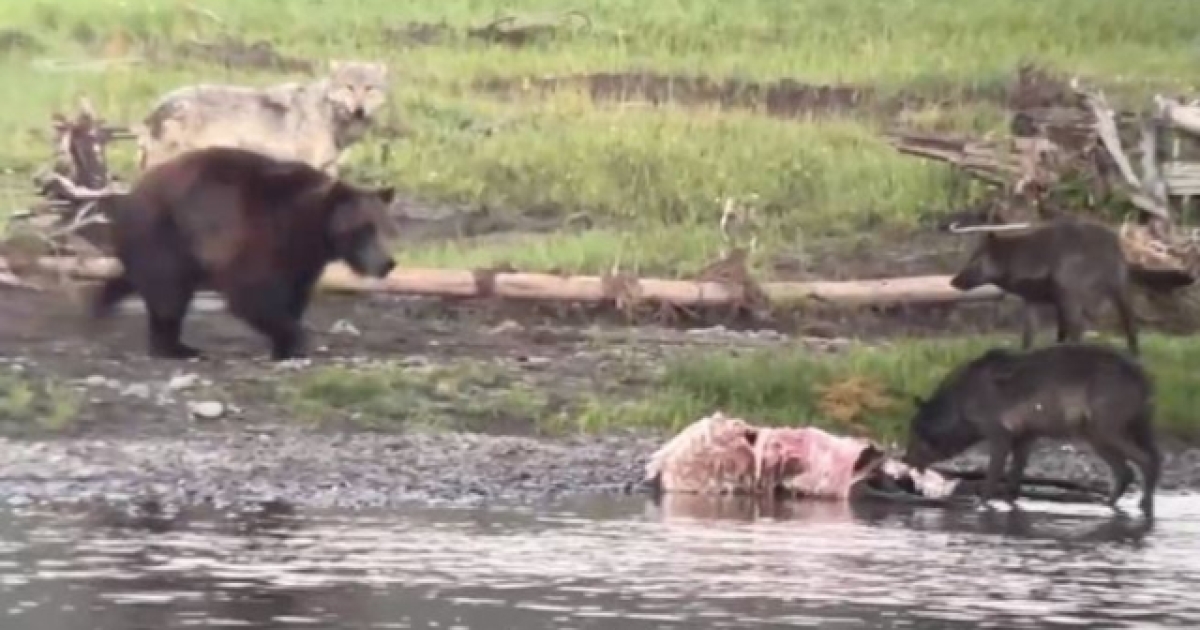 Αρκούδα τα βάζει με ολόκληρη αγέλη λύκων για το κουφάρι μιας νεκρής άλκης (vid)