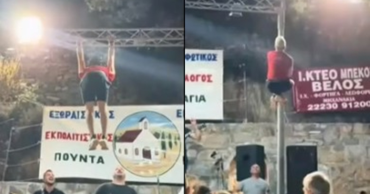 Σκαρφάλωσε στους στύλους με τα φώτα και έκανε… μονόζυγο, ενώ οι θαμώνες παρακολουθούσαν έκπληκτοι.