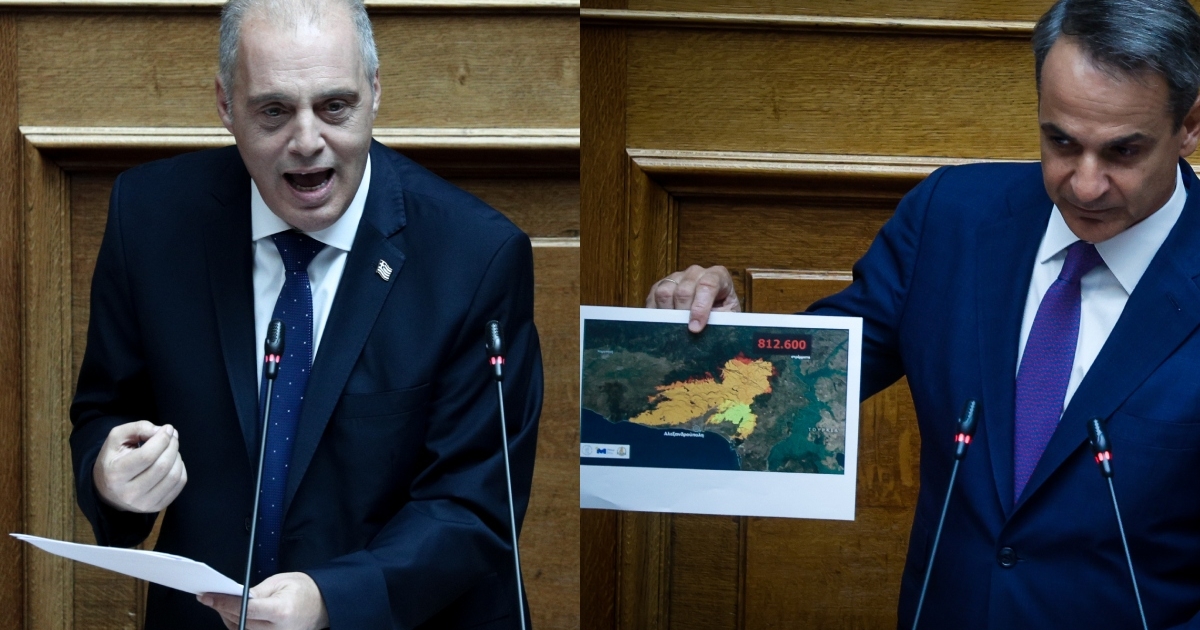 «Να προσέχετε το λεξιλόγιό σας. Είστε διακινητές των πιο θλιβερών fake news και θεωριών συνωμοσίας. Λέτε ό,τι σαχλαμάρα σας κατέβει με το αζημίωτο και όταν σας απαντάμε βγάζετε και γλώσσα. Νισάφι πια. Δεν θα είστε στο απυρόβλητο. Μας είπατε το εξής αμίμητο: Έσβησαν οι φωτιές στην Πάρνηθα όταν ρίξαμε επιβραδυντικό. Ποιος σας λέει αυτές τις σαχλαμάρες; Ποια αεροπλάνα ρίχνουν επιβραδυντικό; Να σας το εξηγήσω για να αντιληφθείτε τι μέγεθος της σαχλαμάρας. Επιβραδυντικό χρησιμοποιούν μόνο τα Πετζεντελ και το χρησιμοποιούμε ελάχιστα και έχει ελάχιστη συνεισφορά στην κατάσβεση της πυρκαγιάς», είπε στη συνέχεια ο Κυριάκος Μητσοτάκης απευθυνόμενος στον Κυριάκο Βελόπουλο με εμφανή ένταση..