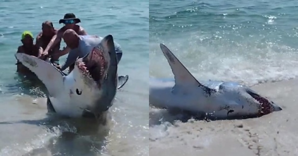 Τεράστιος καρχαρίας έχασε τον προσανατολισμό του και βγήκε στην ακτή: Προσπάθησαν να τον επαναφέρουν στη θάλασσα (vid)