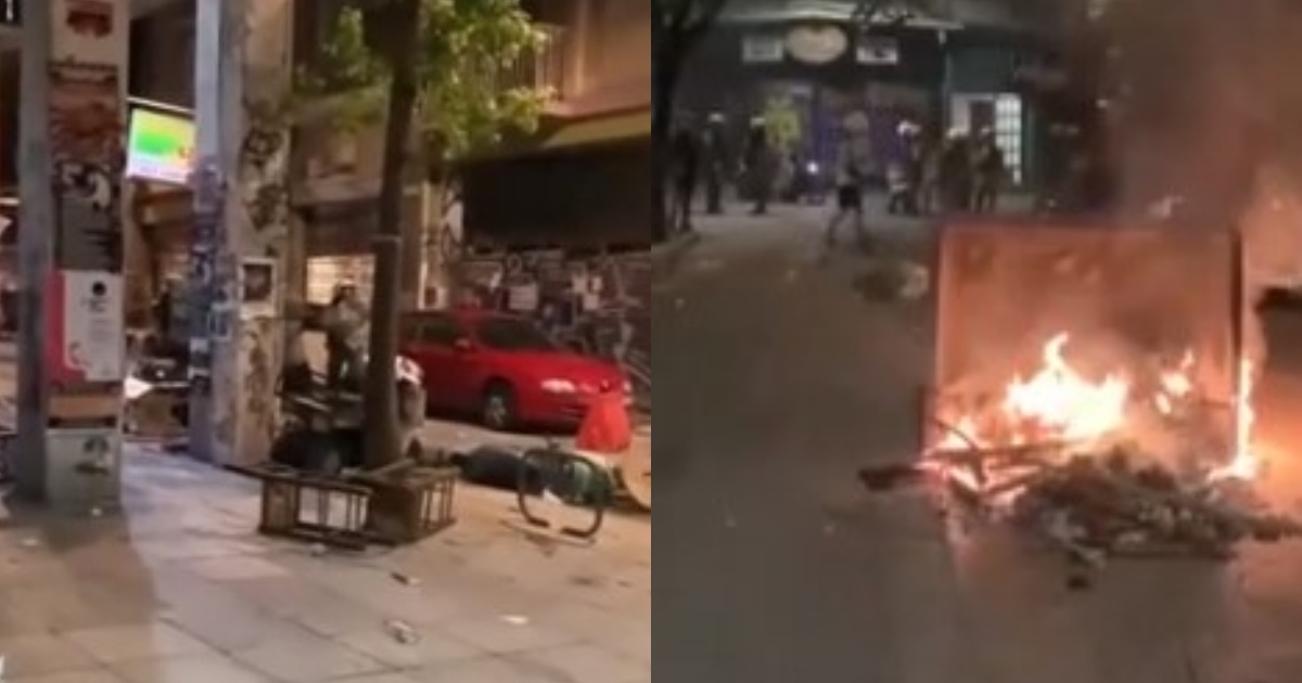 Κάποια στιγμή πέρασαν με μηχανές κάποια άτομα του ακροδεξιού χώρου και πέταξαν τρικάκια επειδή σε λίγες ημέρες συμπληρώνονται δέκα χρόνια από την δολοφονία του Φουντούλη και του Καπελώνη.