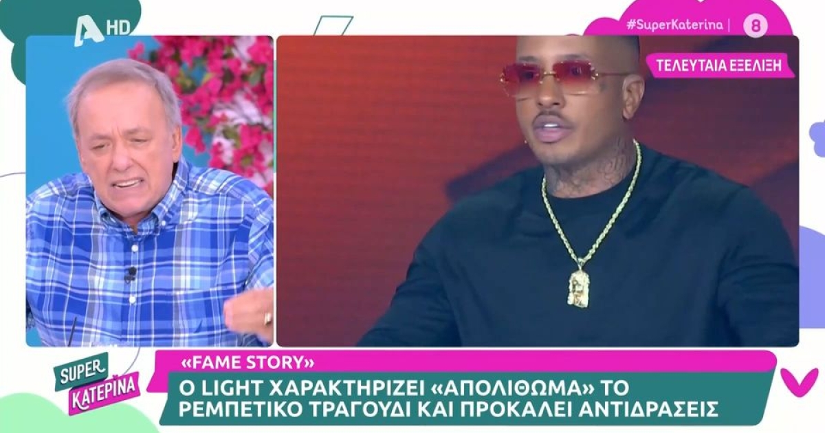 Ο τράπερ χαρακτήρισε το ρεμπέτικο τραγούδι «απολίθωμα», με αφορμή το τραγούδι «Ντερμπεντέρισσα» που ερμήνευσε παίκτρια του Fame Story στο live. Ο Light χλεύασε το συγκεκριμένο κομμάτι, κάτι που ζητήθηκε από τον Ανδρέα Μικρούτσικο να σχολιαστεί κατά την διάρκεια της εκπομπής του ALPHA.