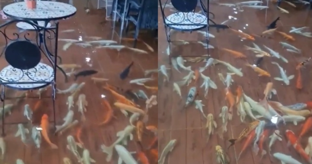 Αυτή η ενδιαφέρουσα εγκατάσταση έγινε αίσθηση στις πλατφόρμες κοινωνικής δικτύωσης μετά από ένα βίντεο που μοιράστηκε το Science Girl στο X και παρουσίασε το εσωτερικό του καφέ, ένα μείγμα ενός παραδοσιακού εστιατορίου και μιας γαλήνιας λίμνης με ψάρια.