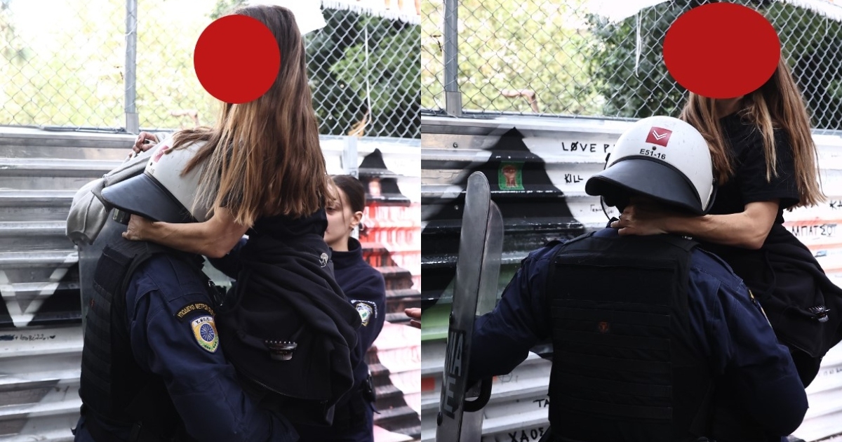 Ωστόσο, ο φωτογραφικός φακός «έπιασε» έναν αστυνομικό να παίρνει σηκωτή μια γυναίκα και να την απομακρύνει από τις περιφράξεις του έργου.