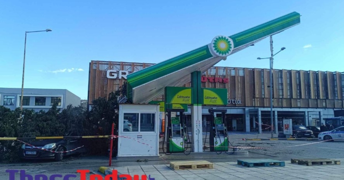 Έγειρε στέγαστρο σε βενζινάδικο στην Θεσσαλονίκη λόγω του αέρα