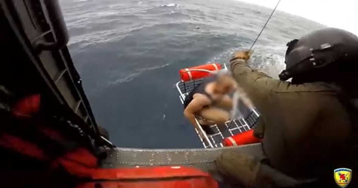 Στο βίντεο φαίνεται ο σοκαρισμένος άνδρας καθώς ανεβαίνει στο ελικόπτερο του Πολεμικού Ναυτικού, μέσα σε δίχτυ. Ο ναυαγός είναι σε γενική καλή κατάσταση, σύμφωνα με τους θεράποντες ιατρούς και η υγεία του δεν εμπνέει καμία ανησυχία.