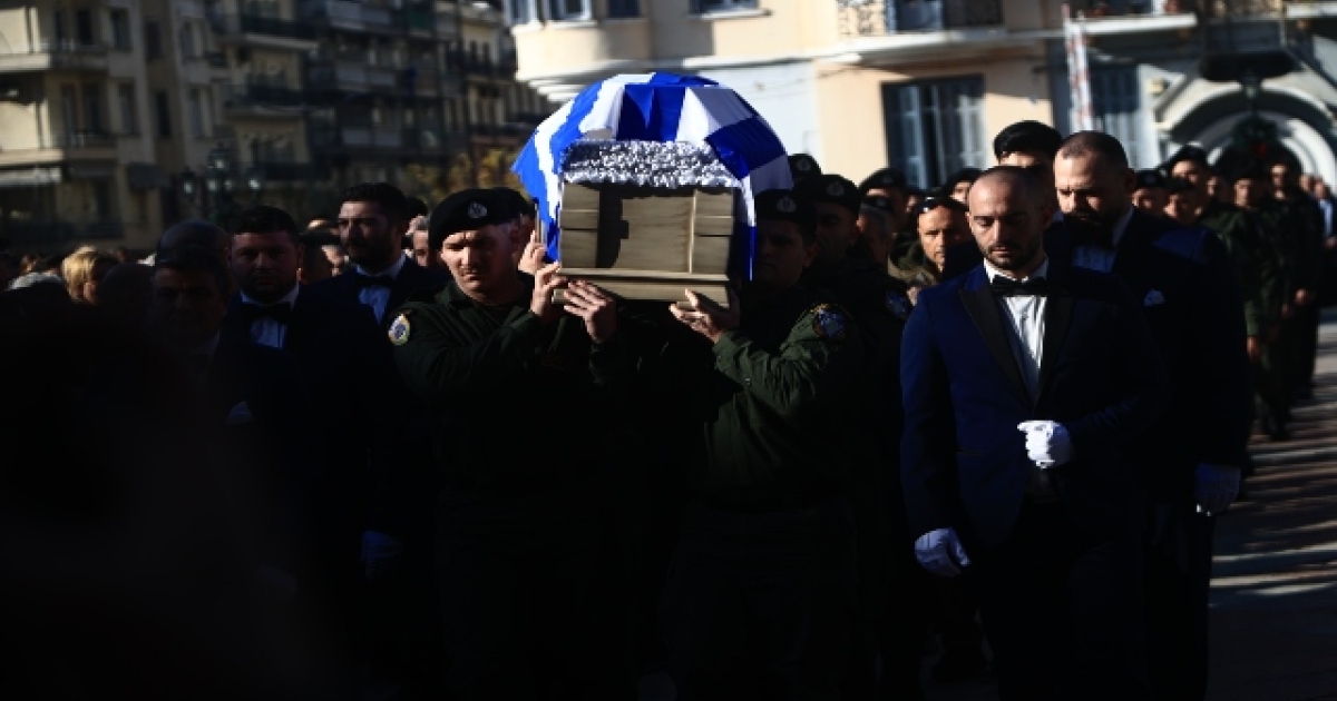 Σύμφωνα με το thestival.gr, περίπου στη μία έφτασε στον Ιερό Ναό του Αγίου Δημήτριου η σορός του 31χρονου αστυνομικού. Το φέρετρο ήταν καλυμμένο με την ελληνική σημαία. Οι παρευρισκόμενοι ξέσπασαν σε χειροκροτήματα και κάποιοι εξ αυτών φώναξαν «ήρωας».