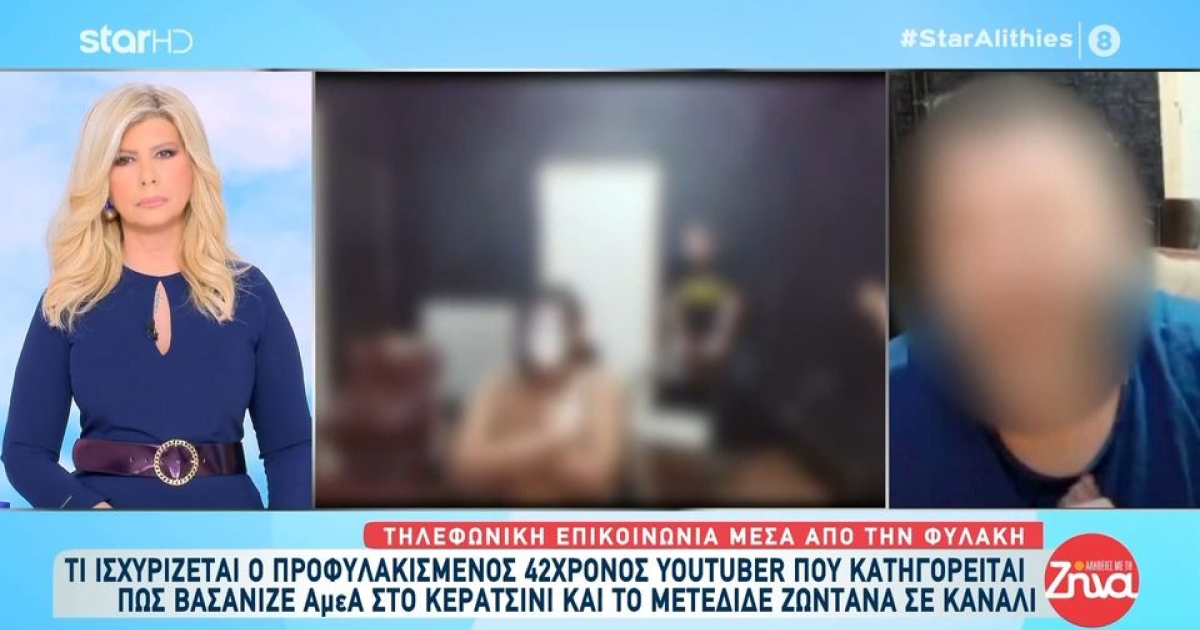 Τηλεφωνική επικοινωνία μέσα από τη φυλακή με τον 42χρονο YouTuber από το Κερατσίνι που βρίσκεται προφυλακισμένος με την κατηγορία για βασανισμό ΑμεΑ και ζωντανή μετάδοση των πράξεών του σε κανάλι στο διαδίκτυο, είχε η Ζήνα Κουτσελίνη.