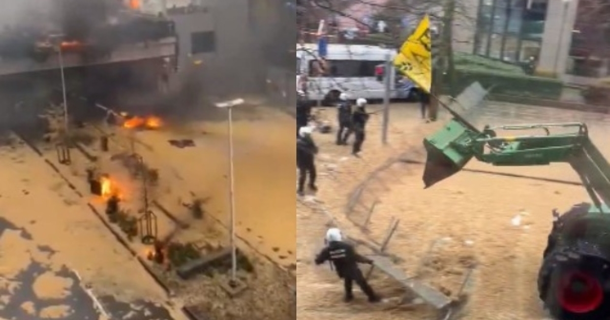 Footage of Belgian farmers breaking through barricades at the European Union HQ in Brussels. pic.twitter.com/XYdrBfNCbO