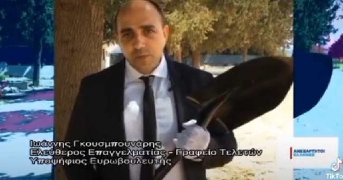 Ο υποψήφιος Ευρωβουλευτής με τους Ανεξάρτητους Ελληνες, Ιωάννης Γκουσμπουνάρης, ο οποίος διατηρεί γραφείο τελετών, ορμώμενος από την επαγγελματική του ιδιότητα, προειδοποιεί ότι θα θάψει την Ευρώπη της Μέρκελ και του Γιούνγκερ.