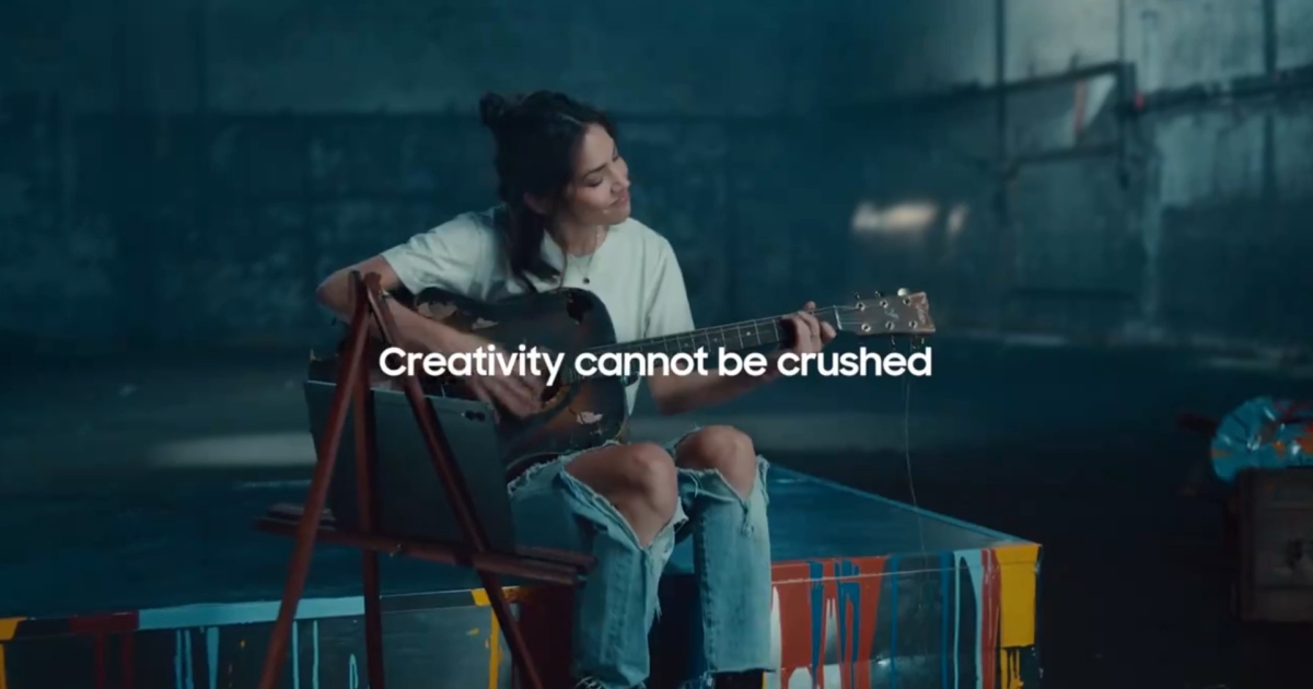 Το μήνυμα του spot κλείνει με τη φράση «η δημιουργικότητα δεν μπορεί να συνθλιβεί».