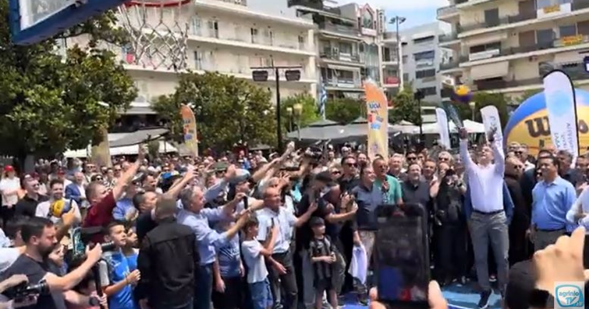 Τελικά κατάφερε να βάλει την τέταρτη βολή με το πλήθος που ήταν συγκεντρωμένο να τον χειροκροτάει. Του έκαναν επίσης δώρο την φανέλα με το νούμερο «1» και δεν ήταν τυχαίο ότι ξεκινώντας την ομιλία του στο Αγρίνιο είπε: «Πάμε να βάλουμε το τρίποντο στις ευρωεκλογές μετά τη νίκη στις διπλές εκλογές του Μαΐου και του Ιουνίου του 2023».