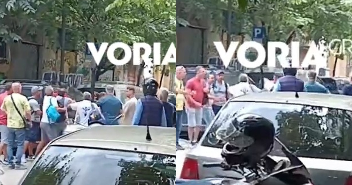 Αμέσως η συμπλοκή των δύο ανδρών πήρε έκταση, με τους πιο ψύχραιμους να προσπαθούν να τους χωρίσουν.