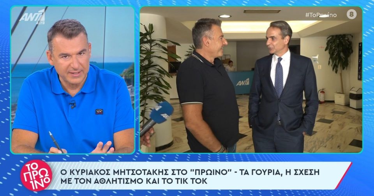 Εκεί ο Γιώργος Λιάγκας και ο Τάσος Τεργιάκης είχαν την ευκαιρία να κάνουν μερικές ερωτήσεις στον πρωθυπουργό για τα γούρια του, τη σχέση του με τον αθλητισμό, αλλά και την αγαπημένη του συνήθεια, το TikTok.