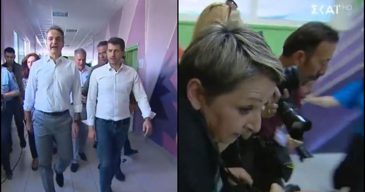 Ωστόσο, δεν έλειψαν και τα απρόοπτα κατά την έξοδο του από την εκλογική αίθουσα. Την ώρα που ο Κυριάκος Μητσοτάκης κατευθυνόταν στις σκάλες για να βγει εκτός κτιρίου, αρκετός κόσμος τον ακολουθούσε.