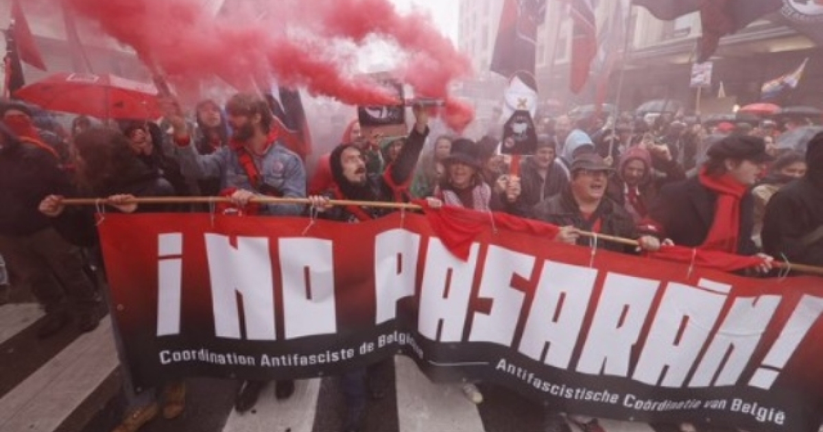 Αψηφώντας τη βροχή, οι διαδηλωτές έκαναν πορεία μέσα στους δρόμους της βελγικής πρωτεύουσας έπειτα από έκκληση του «Αντιφασιστικού Συντονιστικού του Βελγίου», ενός συνασπισμού μιας εικοσαριάς οργανώσεων, μέχρι την πλατεία του Λουξεμβούργου, μπροστά στο Ευρωπαϊκό Κοινοβούλιο.