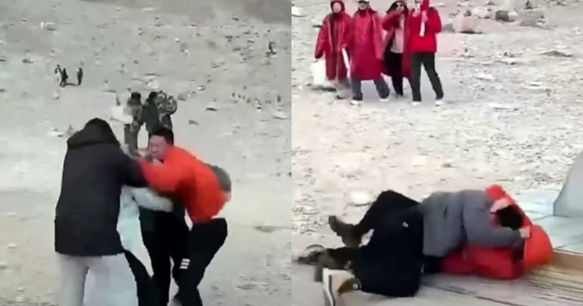 Ο καυγάς φέρεται να έλαβε χώρα στις 25 Ιουνίου, όταν δύο ομάδες τουριστών συγκεντρώθηκαν στην πλατφόρμα θέασης 8848 στην Αυτόνομη Περιοχή Θιβέτ της Κίνας, σύμφωνα με τον Independent.