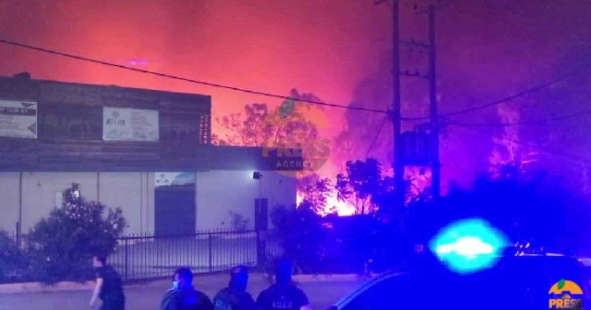 Στην περιοχή, επίσης, έχει διακοπή ρεύματος ενώ υπάρχουν μαρτυρίες πως ακούστηκαν και αρκετές εκρήξεις!